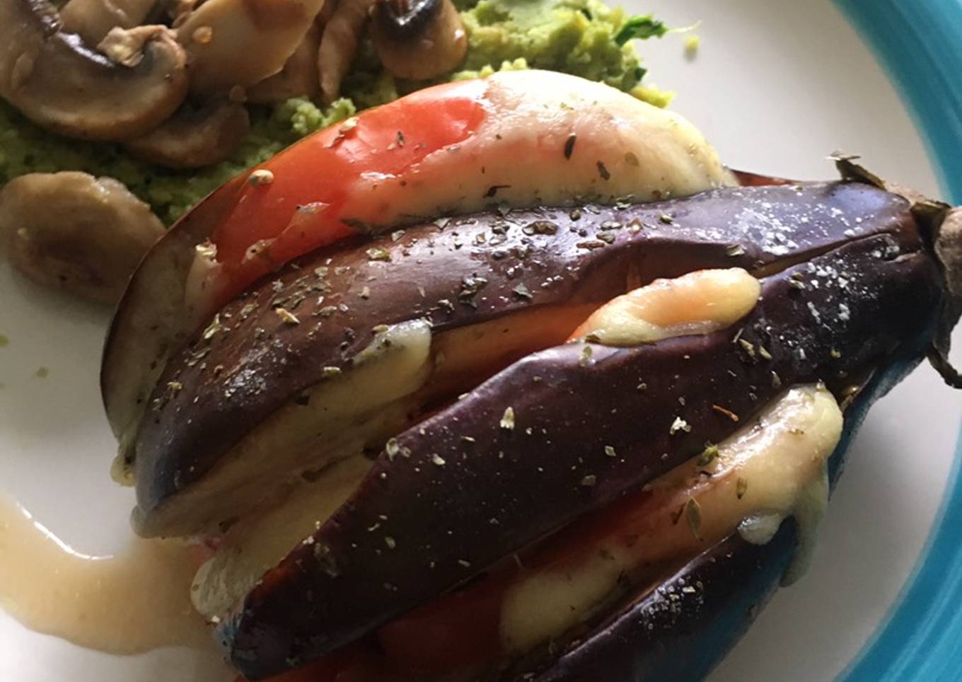 Una forma diferente de comer las 🍆🍆🍆, en esta casa las acompañamos con hummus de espinacas y champiñones salteados! 😋😋😋