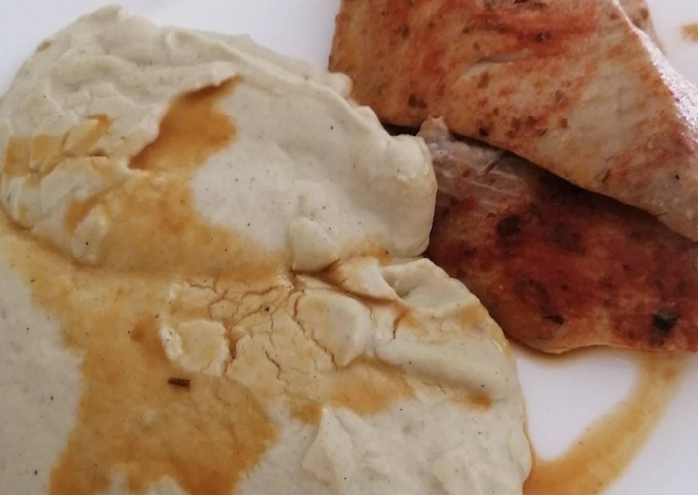 - Hoy en casa acompañamos la reineta al horno con un este rico puré de berenjenas.