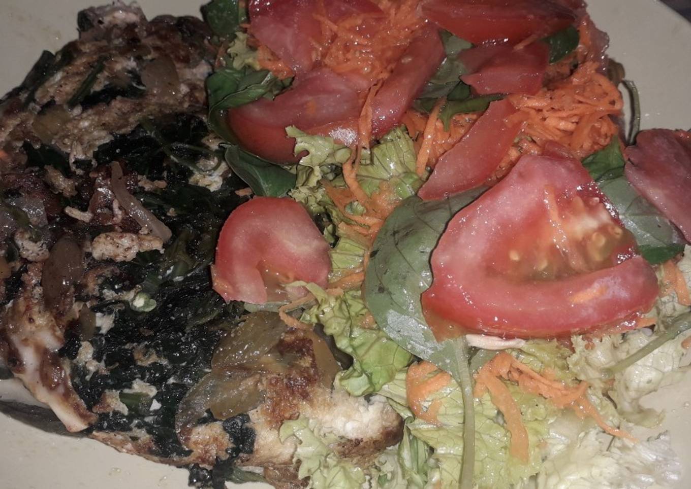 Hello everybody, hope you are having an amazing day today. Today, we're going to prepare a distinctive dish, Tortilla de espinacas y berenjena con ensalada. It is one of my favorites food recipes. For mine, I'm gonna make it a bit unique. This is gonna smell and look delicious.