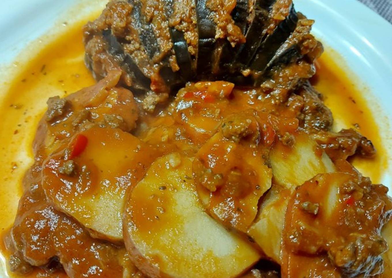 - Cocinamos con fuego bajo hasta que las papas queden blandas y tratar de no revolvér mucho para no desarmar la berenjena. A degustar!