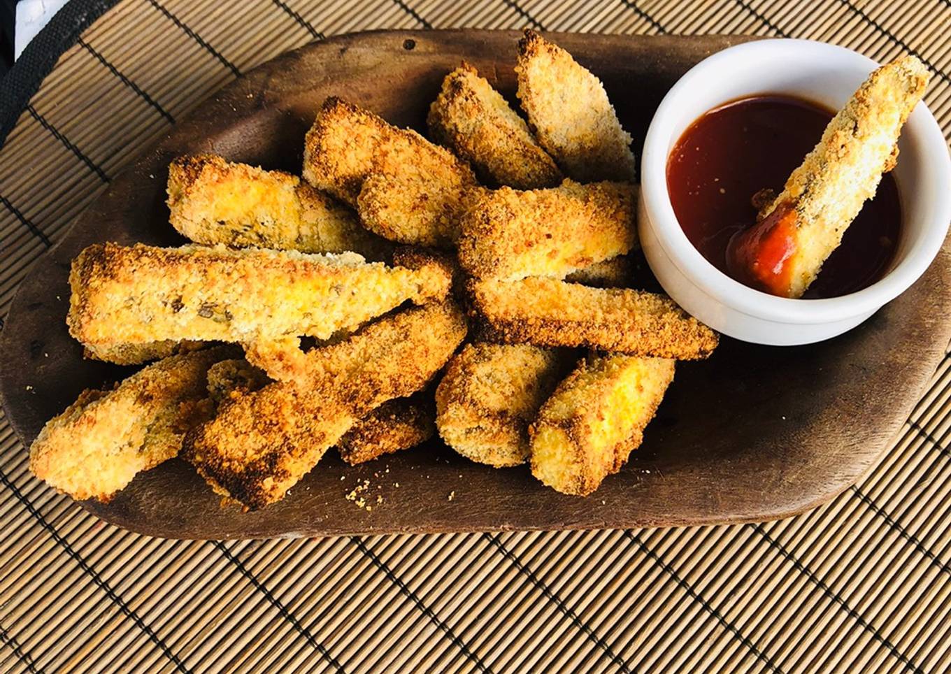 - Yo las puse en placa con papel para horno y les coloqué aceite de oliva vaporizado encima, y al horno medio por 15 min maso (ojo, también las podes hacer fritas con oliva o aceite de coco, o grasa animal) tiene que estar doraditas