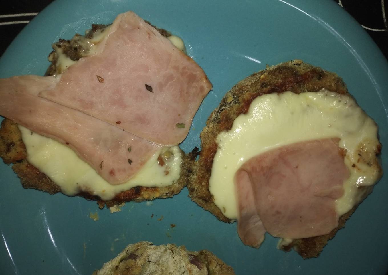 - Luego de pasar por huevo, las pasaremos por pan rallado que soboricé también con ajo y perejil seco, algo de sal. Las rebozamos de ambos lados apenas aplastando. Mandar a horno precalentado en una fuente aceitada. 10 minutos dorar de cada lado.(en la foto verán que con el huevo y pan rallado que me sobró rebocé una cebolla, lo subo en otra receta)