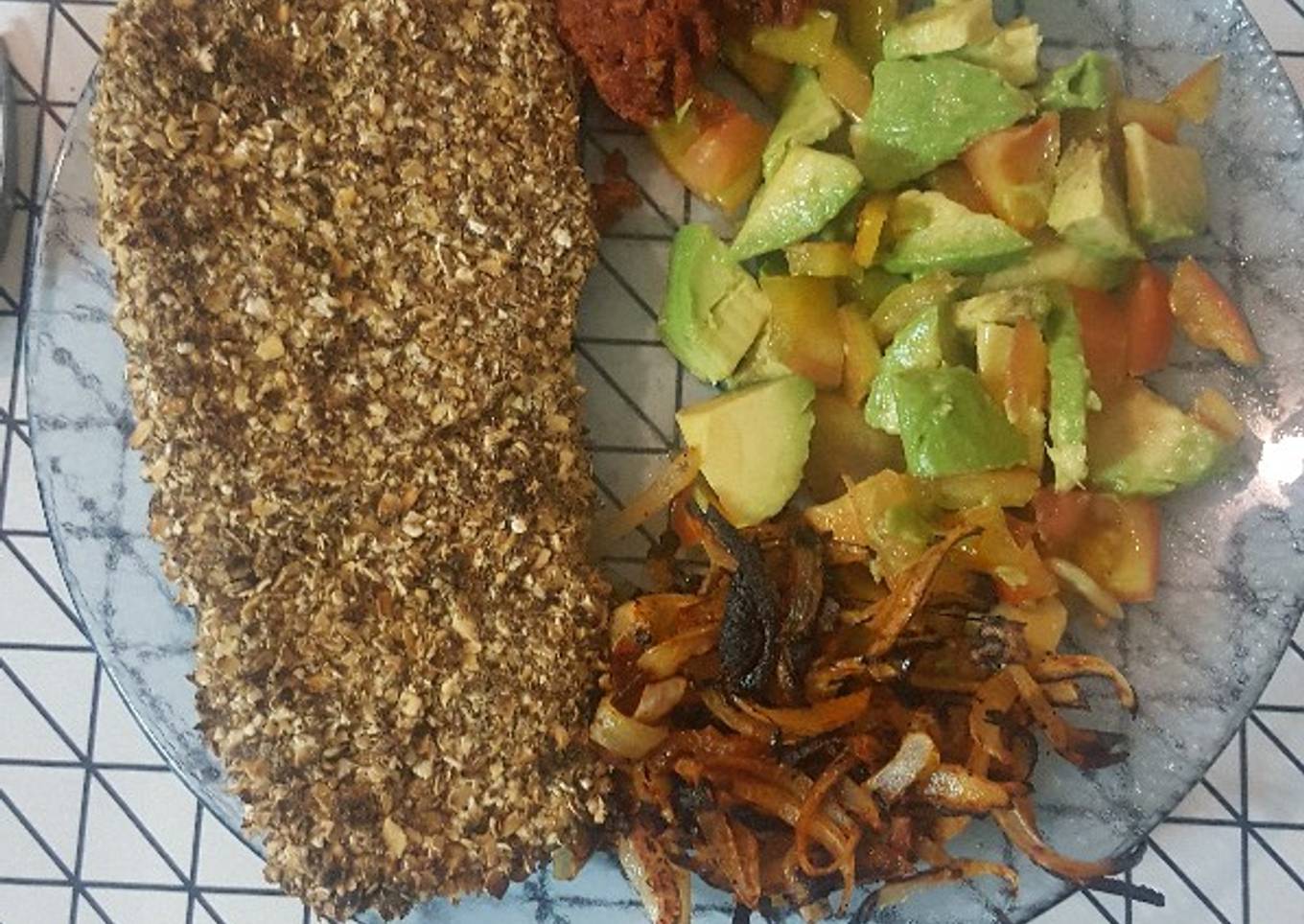 - Hacer el rebozador. Yo uso avena y harina de lino, porque me gusta como queda, pero lo podes hacer con cualquier rebozador