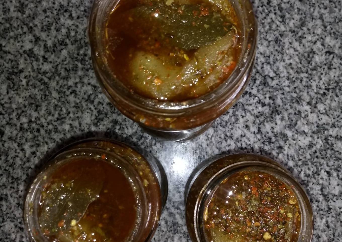 - Cuando las berenjenas están listas retirar del fuego colocar un poco de condimento en la base del frasco e ir agregando entre rodaja y rodaja condimento hasta completar agregar las hojas de laurel y completar con un poco de aceite hasta cubrir