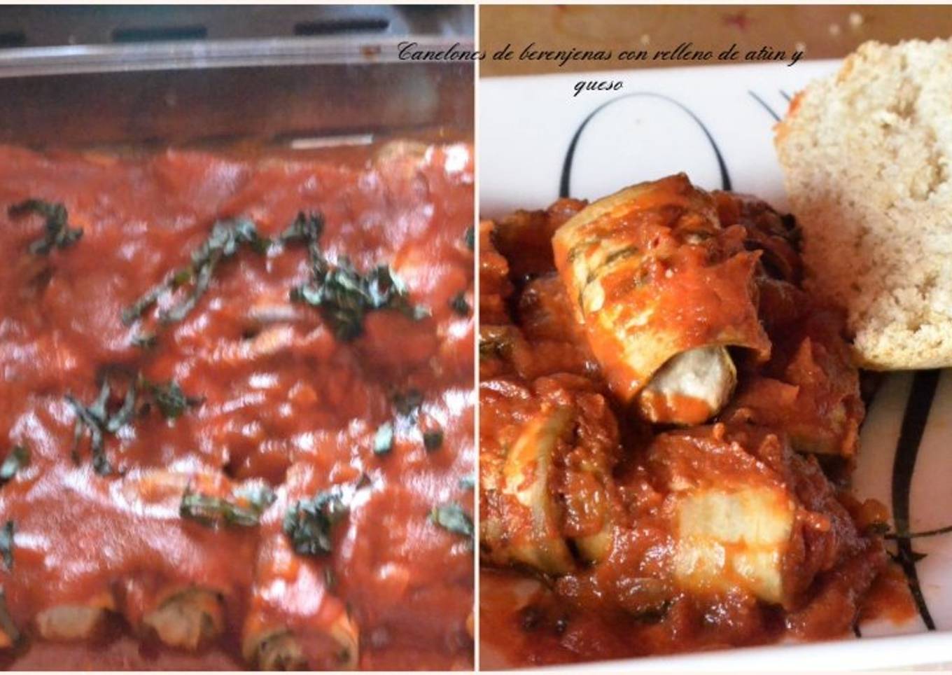 Canelones de berenjenas con relleno de atún y queso