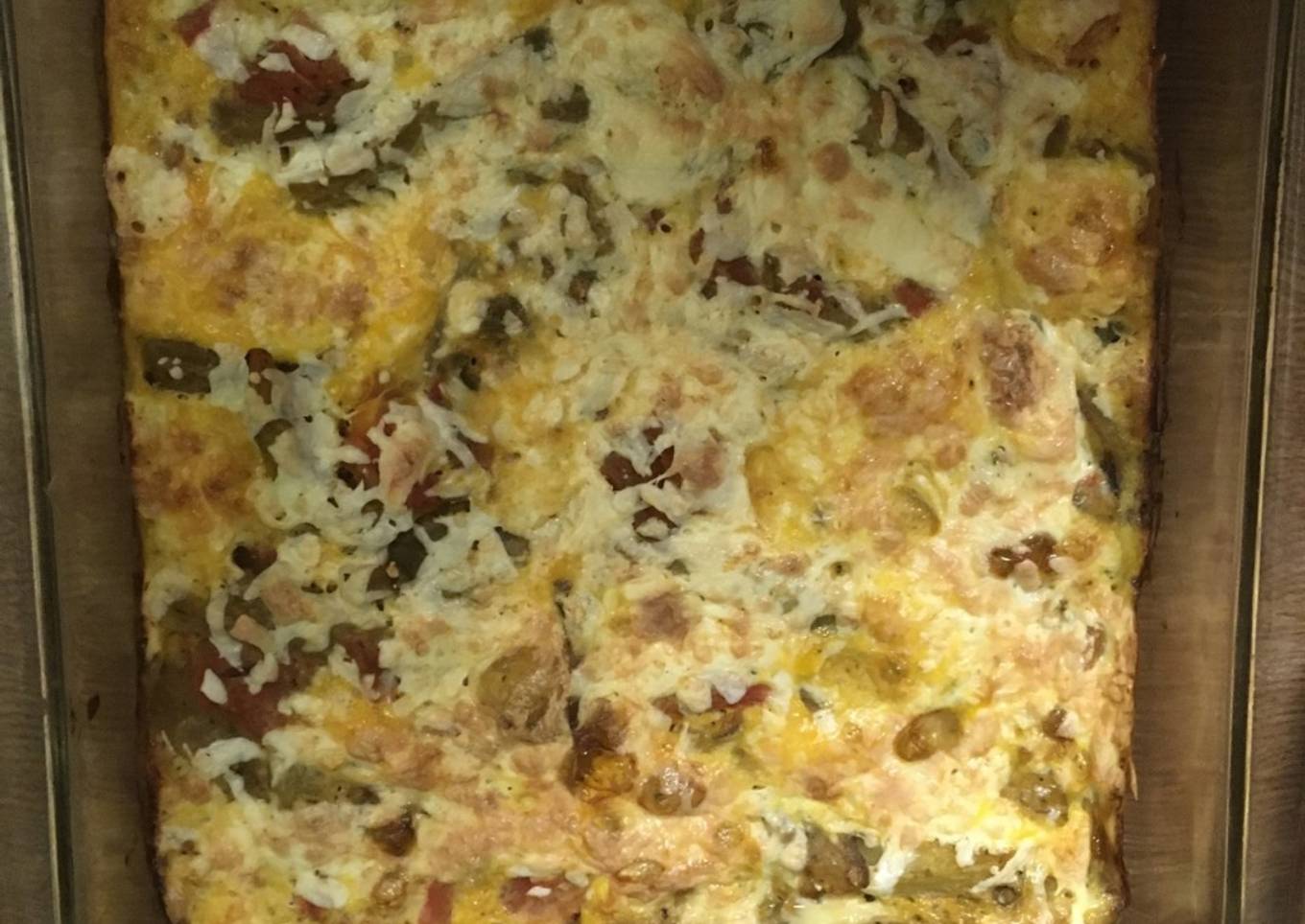 - Pelamos una berenjena y la cortamos en tiras y las ponemos a saltear en un poco de aceite, agregamos dos jitomates pelados y picados, sal, pimienta y un pedazo de pimiento picado, Cuando se haya puesto transparente la vaciamos en un refractario engrasado y le ponemos una pizca de orégano espolvoreada por encima y 3 huevos batidos como huevos revueltos y queso rallado por encima y la metemos al horno a que se cuezan los huevos y el queso se haya derretido.