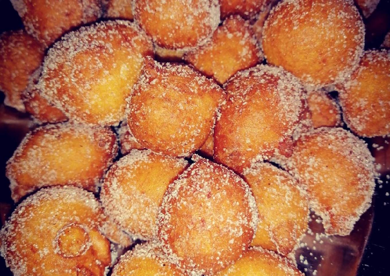 - Una vez estén dorados ponemos a escurrir el aceite sobrante y esperamos que temple los buñuelos, una vez templado echamos en un bol azúcar y media Cucharadita de canela y rebozados los buñuelos
