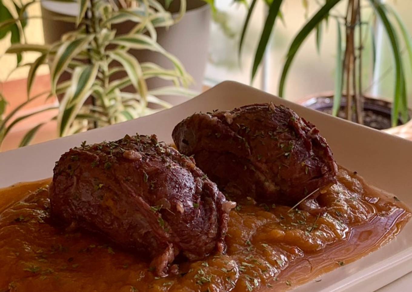 Carrilladas estofadas con calabaza