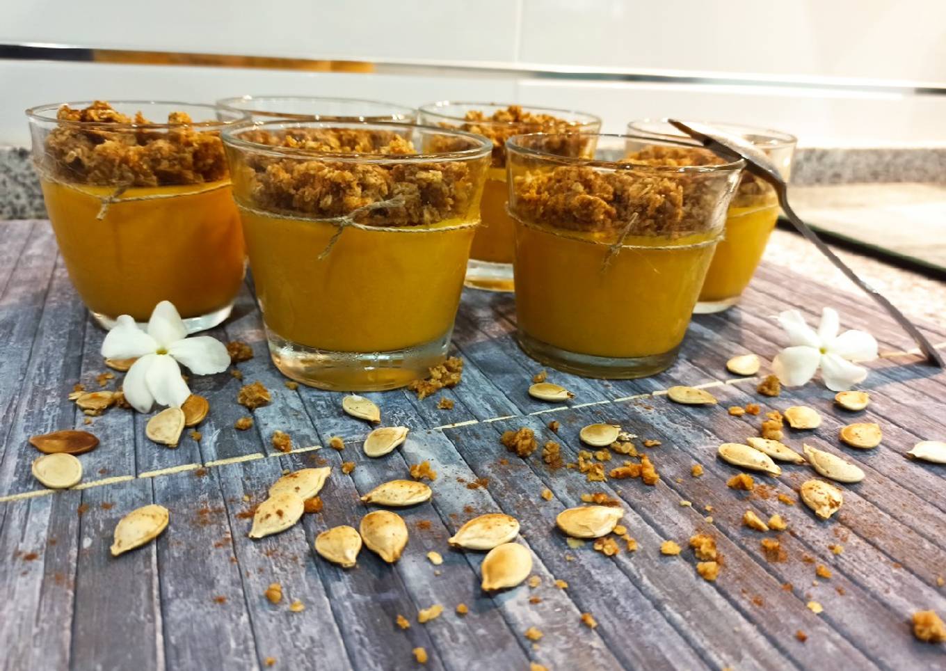 Panna cotta de calabaza con crujiente de avena y galletas 🎃🥄