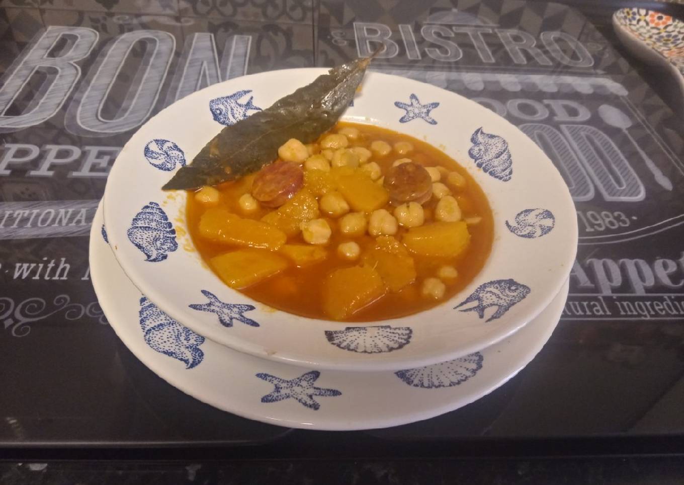 Instructions to make to make Garbanzos con calabaza y chorizo